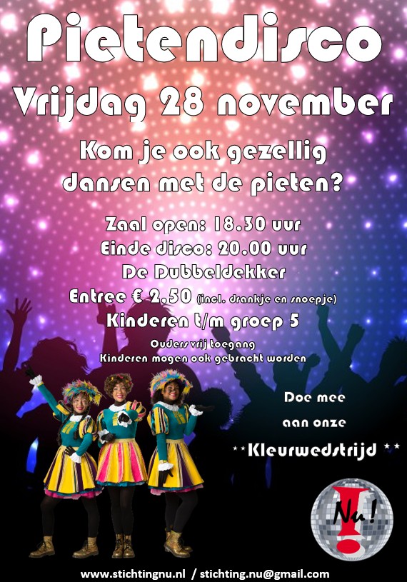 Ook dit jaar presenteert Stichting NU! De Pietendisco, zien we jou ook?